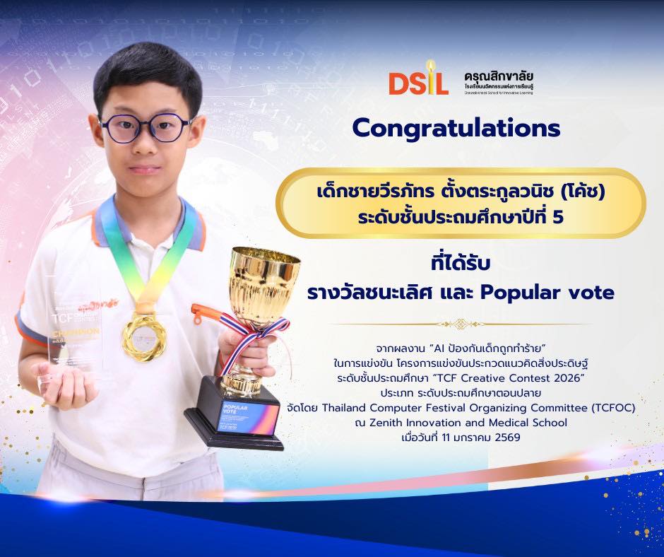 ขอแสดงความยินดีกับ เด็กชายวีรภัทร ตั้งตระกูลวนิช (โค้ช) นักเรียนระดับชั้นประถมศึกษาปีที่ 5