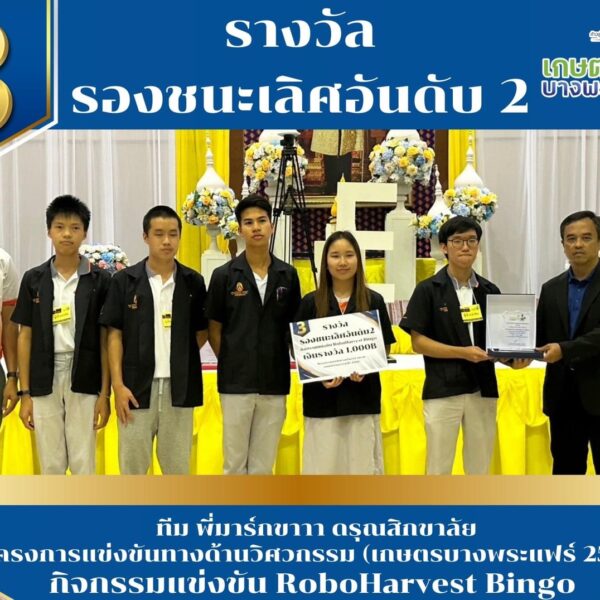 ขอแสดงความยินดีกับนักเรียนดรุณสิกขาลัยทีม พี่มาร์กขาาา ได้รับรางวัลรองชนะเลิศอันดับ 2 กิจกรรมแข่งขัน RoboHarvest Bingo ในโครงการแข่งขันทางด้านวิศวกรรม งานเกษตรบางพระแฟร์ ครั้งที่ 27 ณ มหาวิทยาลัยเทคโนโลยีราชมงคลตะวันออก เมื่อวันที่ 8 ธันวาคม 2566 รายชื่อผู้เข้าร่วมการแข่งขัน 1. นายทนุธรรม อารีย์วัฒนะธรรม (เทม) ชั้นมัธยมศึกษาปีที่ 5 2. นางสาวนภัสนันท์ ภู่นิ่ม (เกน) ชั้นมัธยมศึกษาปีที่ 5 3. นายนภัทร ยี่สุ่นศรี (เจอร์นี่) ชั้นมัธยมศึกษาปีที่ 5 4. นายนายสุพรพงษ์ ม่วงศิริ (ปุ๊บปั๊ป) ชั้นมัธยมศึกษาปีที่ 4 5.นายนายฐาน์ แตระกุล (ปั้น) ชั้นมัธยมศึกษาปีที่ 4 6. นายชินภัท มงคลศิริวัฒนา (ครูโอห์ม) ที่ปรึกษา