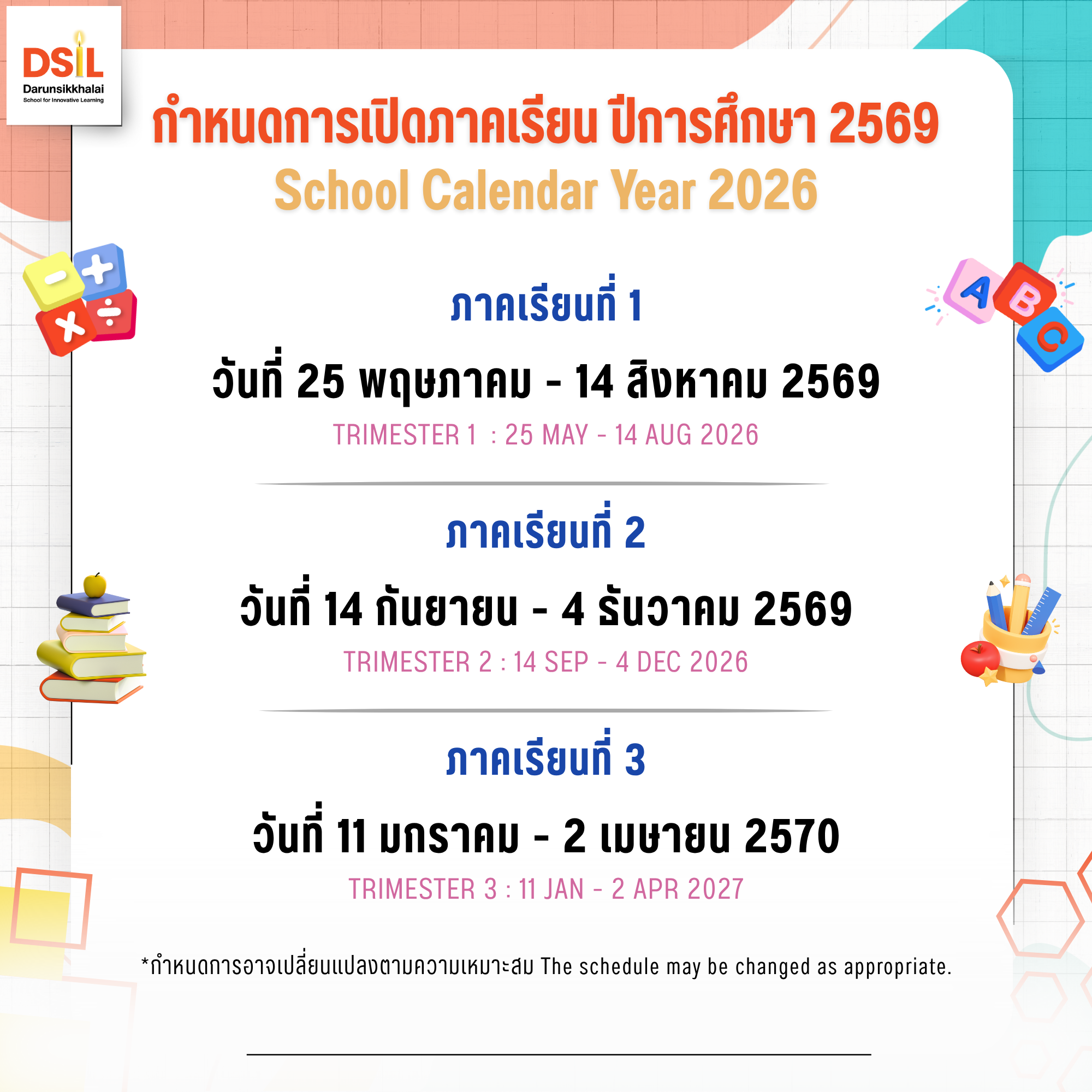กำหนดการเปิดภาคเรียน ปีการศึกษา 2569