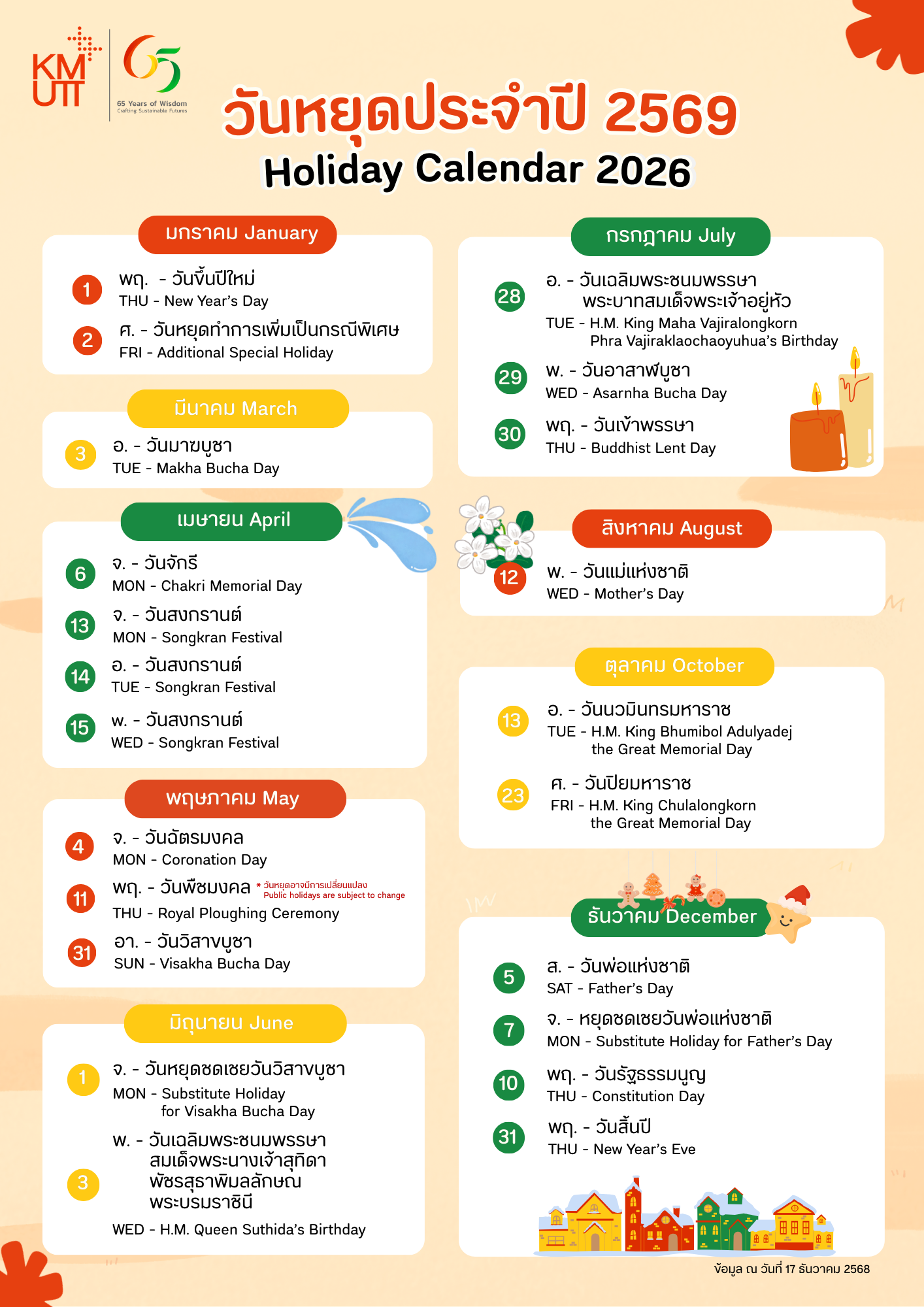 ปฏิทินวันหยุด ประจำปี 2569
